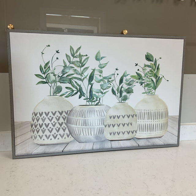 Herbs in Pottery Framed Canvas