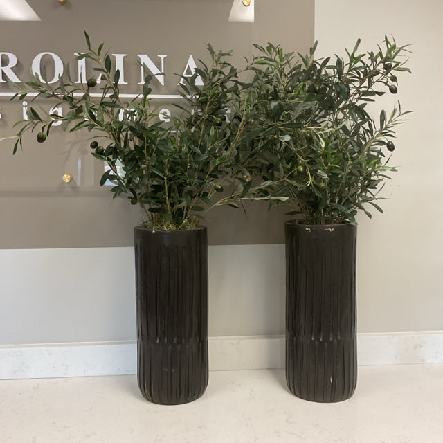 Pair of Black Planters with Olive Branches