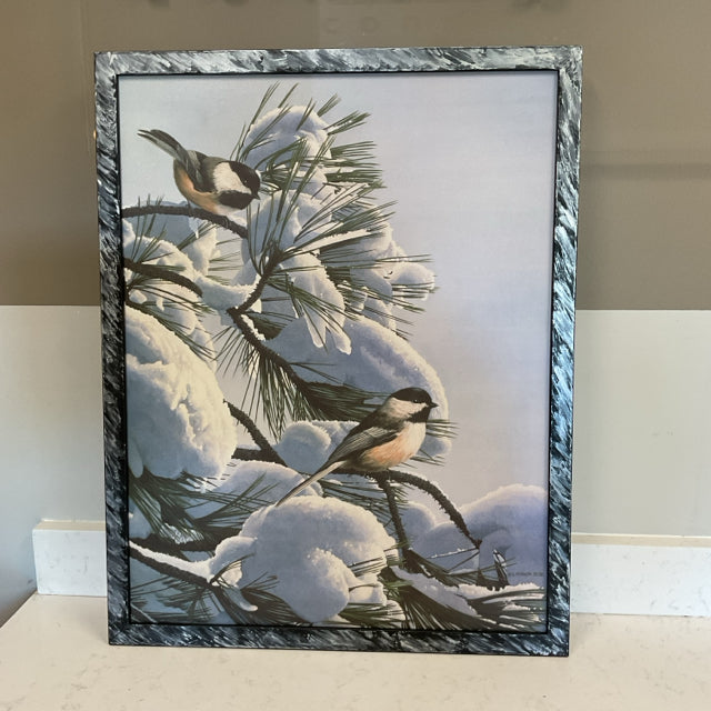 Framed Birds on Snow Branches by RS Parker
