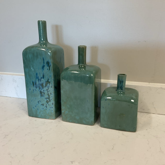 Set of 3 Green Square Vases