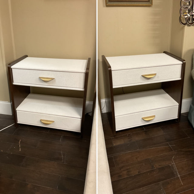 Pair of Custom Linen Wrapped Open Nightstands