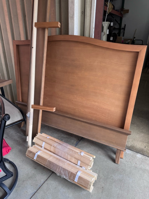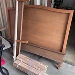 headboard, footboard, 2 rolls of slats, 1 wood middle support with feet, 2 side rails
