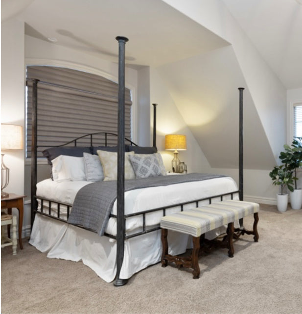 headboard, 4 posts, 1 ladder footboard, 2 ladder side rails, 2 solid metal side rails, 3 metal slats with feet, hardware in bag