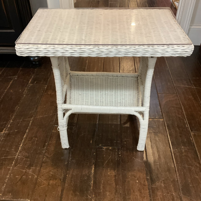 White WIcker End Table