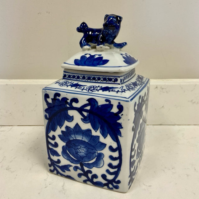 Blue and White Jar with Lion Lid