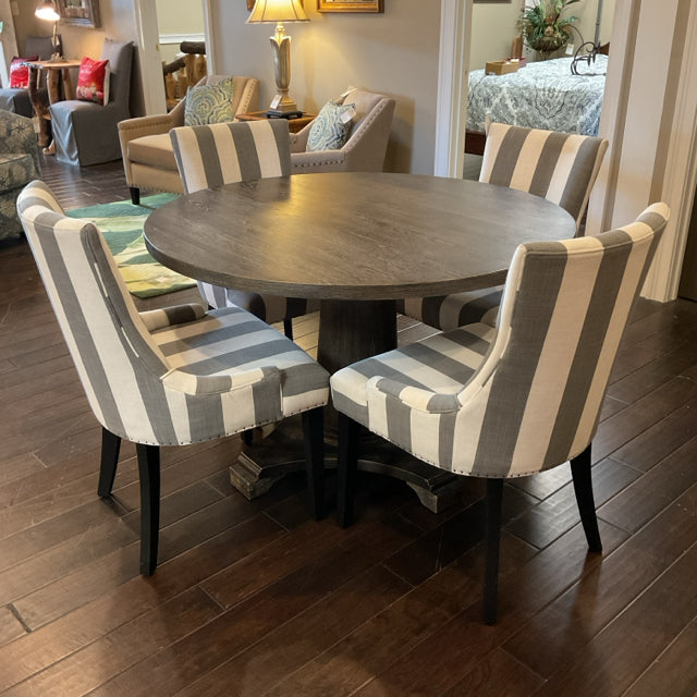 Round Dining Table with 4 Gray and White Chairs (As Is)