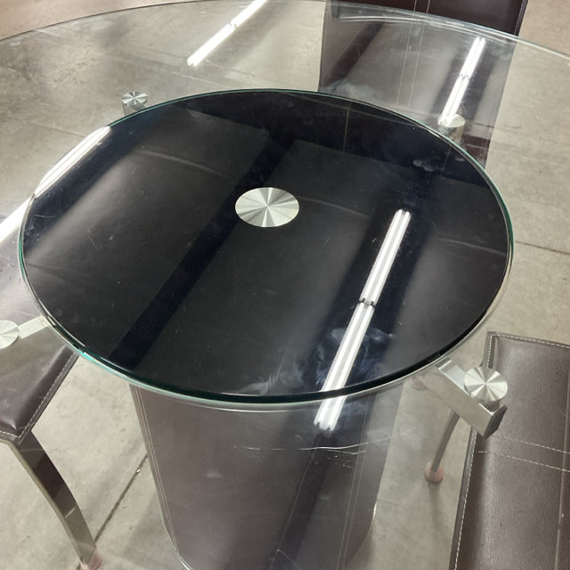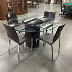 Glass Table with Lazy Susan and 4 Chairs (As Is)